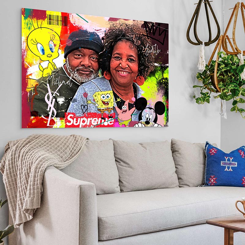 THE Mukautettu Street Art Pop -maalaus on enemmän kuin pelkkä seinäkoriste. Se on elämäsi, rakkautesi ja intohimosi juhla, joka on muutettu taiteeksi. Älä missaa mahdollisuutta muuttaa valokuvasi upeaksi taideteokseksi, joka kertoo tarinasi.