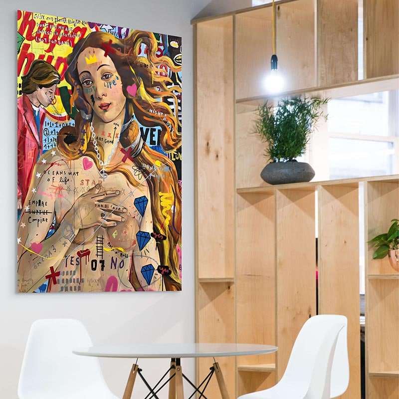 Com suas cores vibrantes e detalhes cativantes, "Symphonie Pop" imediatamente chama a atenção e se torna o ponto focal de qualquer ambiente. Esse pintura urbana é perfeito para quem busca introduzir um elemento de surpresa e conversa em sua decoração, adicionando um toque de juventude e frescor.